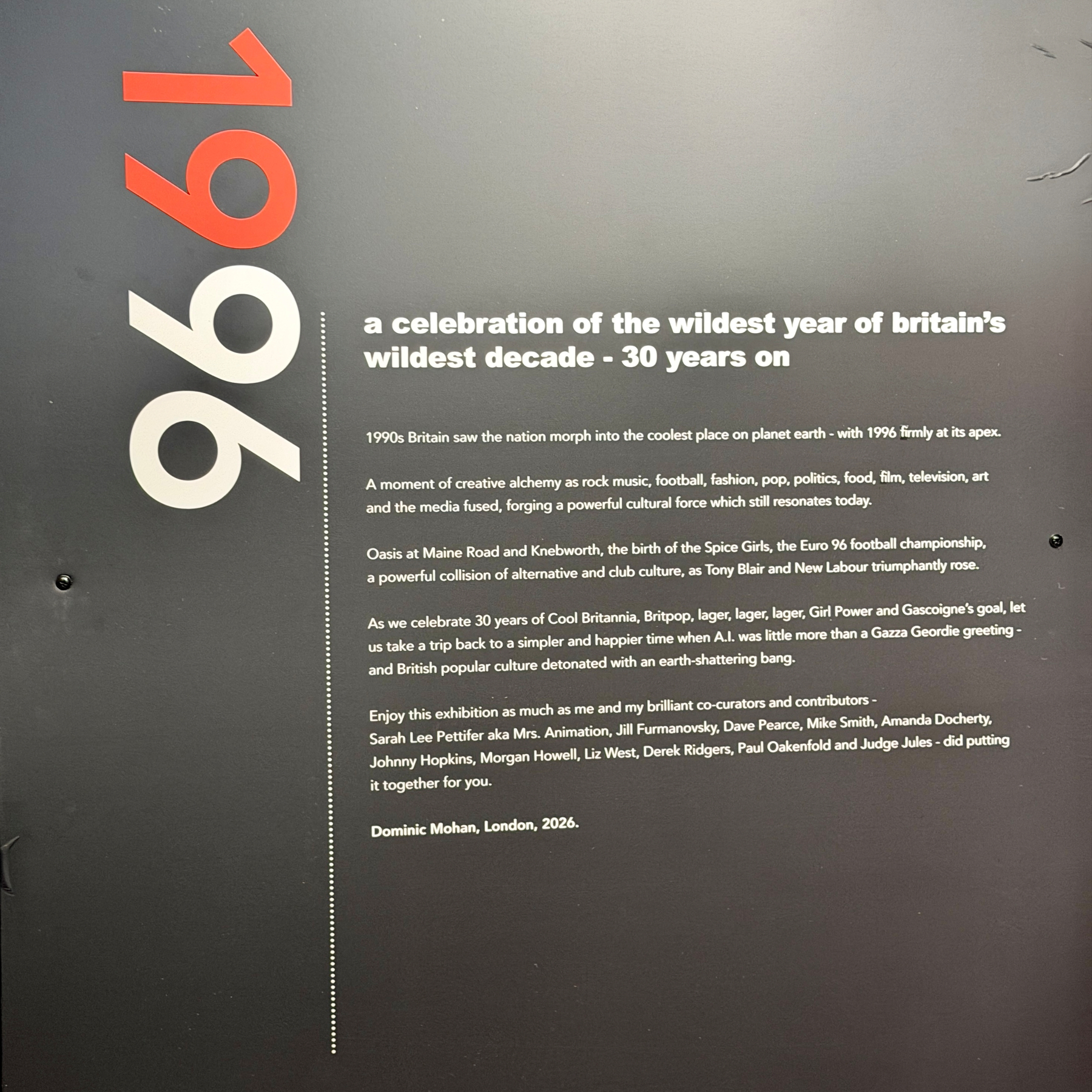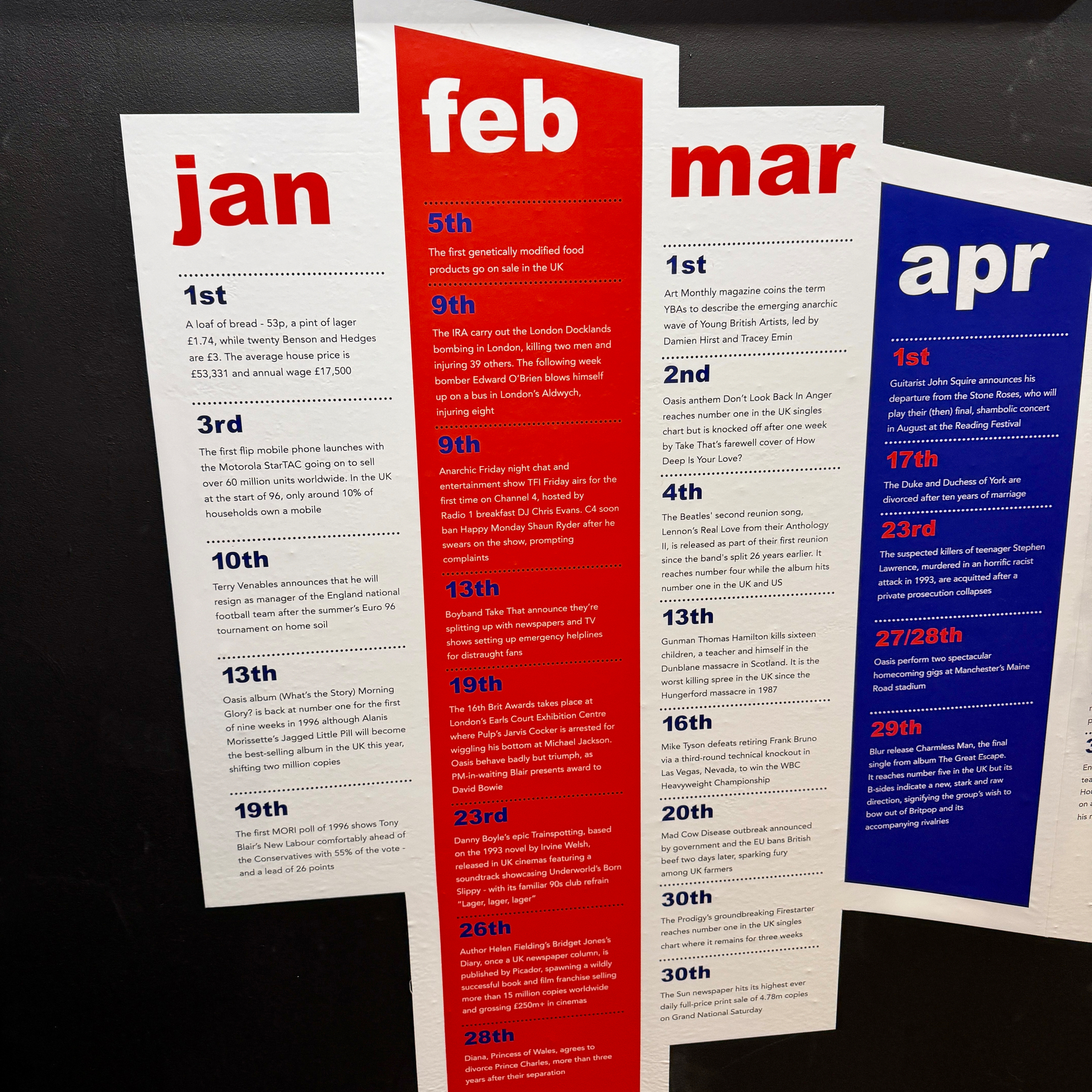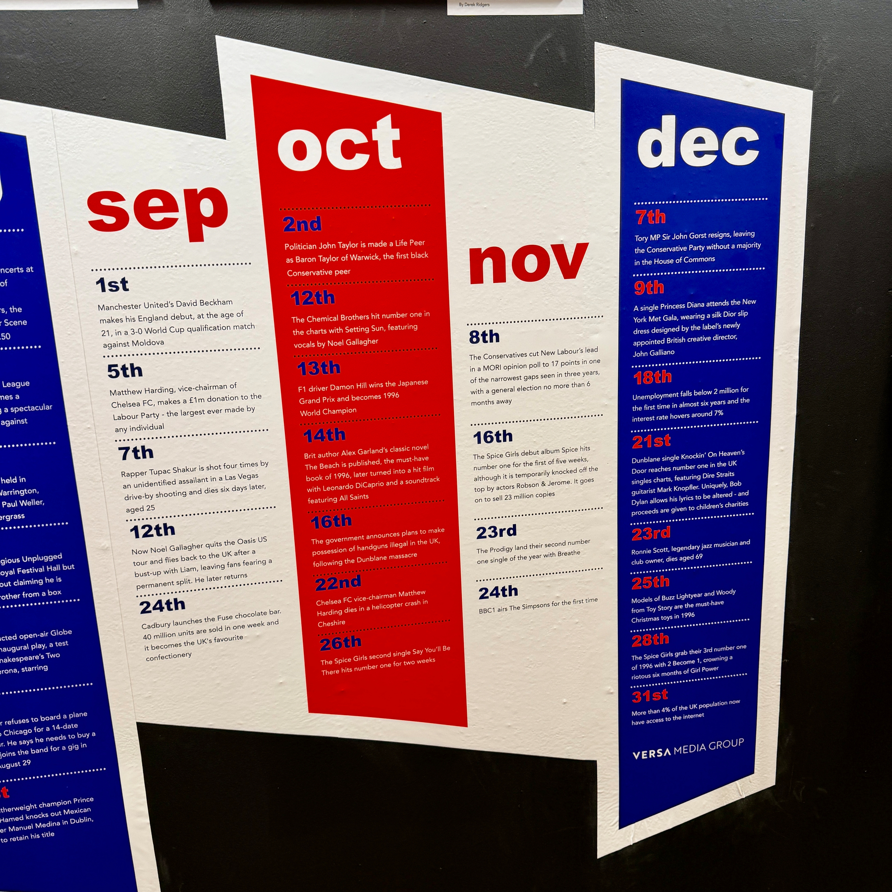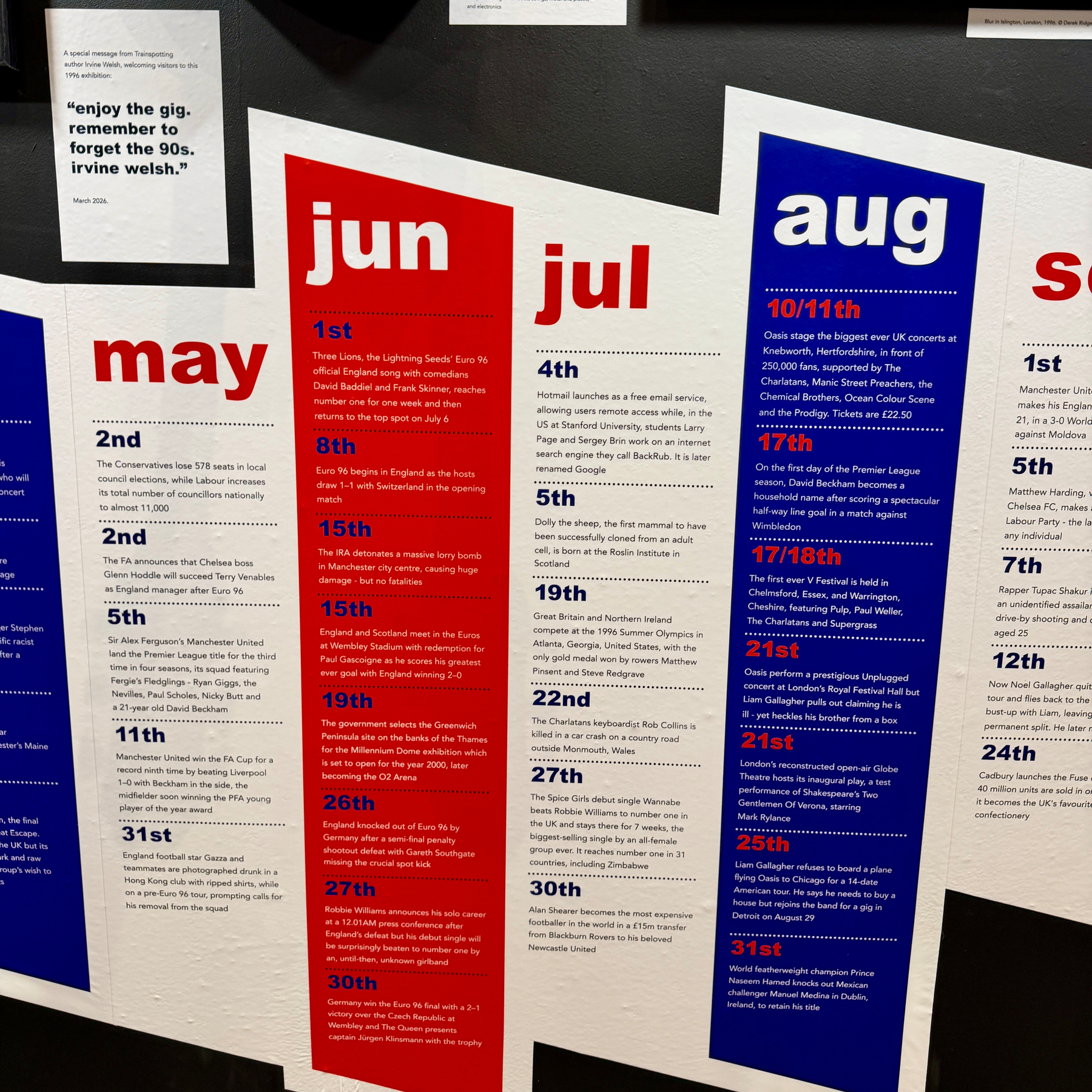Visited the @barbicanmusiclibrary to see the 1996 Exhibition. It was super cool. If you look closely at the monthly timeline, it seems the lads from @oasis had a blowup every few weeks. The Spice Girls seemed to have a lot less drama in 1996.